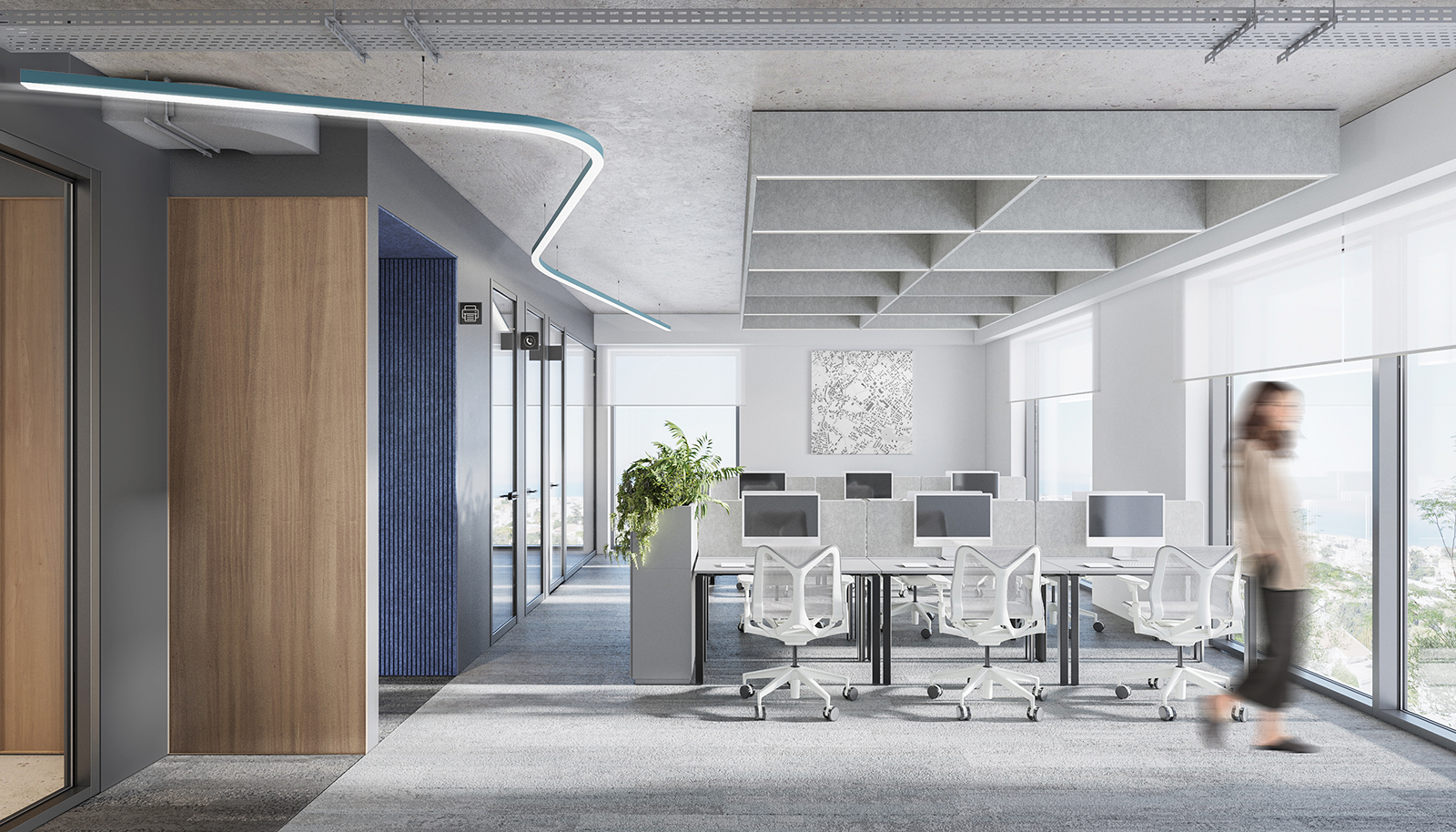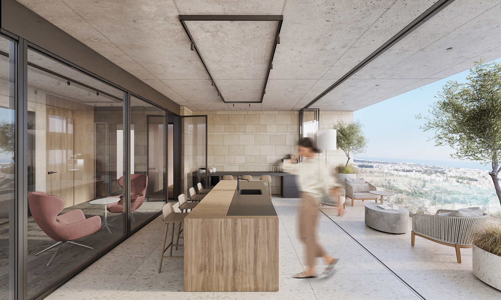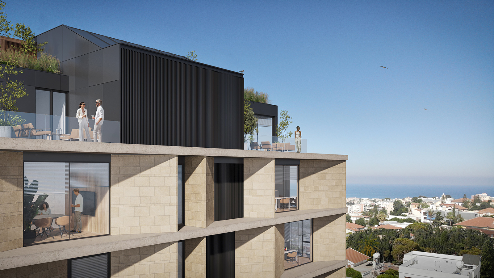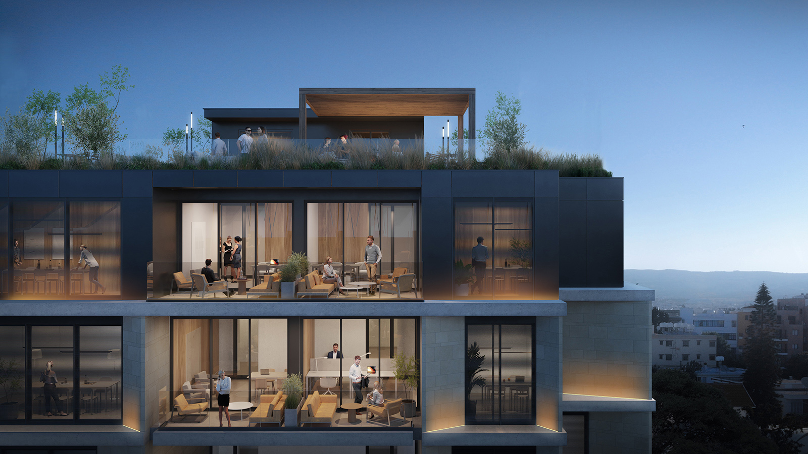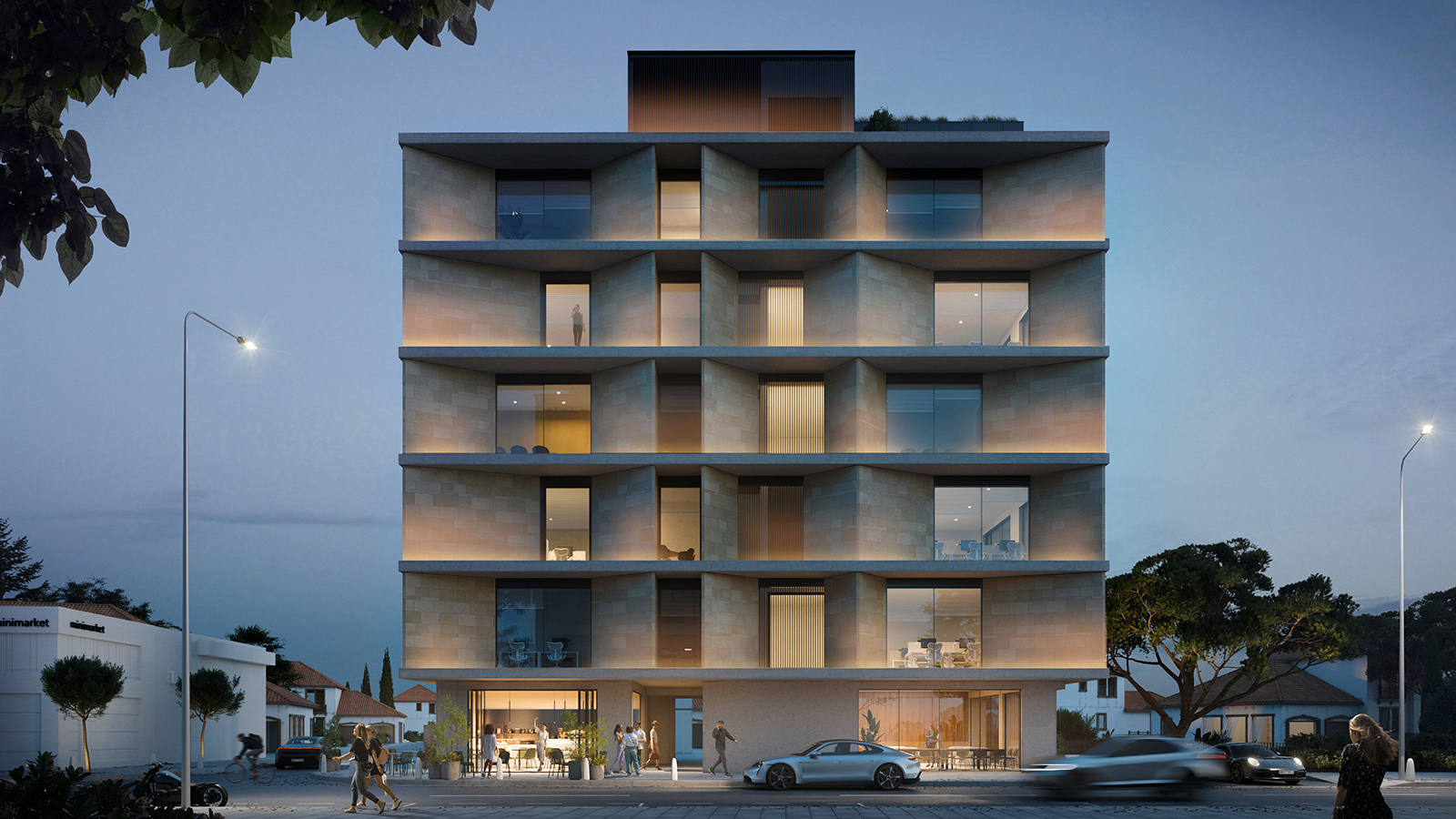 Majestic is a six-story building featuring public facilities on the ground floor and basement. The premises also include ample space for outdoor parking. There are no high-rise buildings in the city center. Since the project site is located on an elevated area, the upper floors offer a unique panoramic view of the entire city, including magnificent sea observe. The layout transitions from public functions on the lower floors to private functions on the upper floors. Thus, the lower levels feature areas such as a reception, café, informal zones and a multifunctional space.